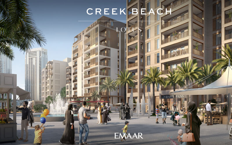 Introducing Lotus at Creek Beach. Nestled in Dubai Creek Harbour, Lotus offers you a choice of the best 1 – 3 bedroom apartments with views of the waters as well as the city skyline. These homes are located in a popular family friendly community that has everything you need right at your doorstep.