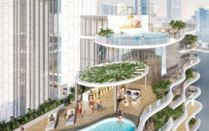 Chic Tower, inspired by the healing properties of turquoise, is a place where wellness and opulence collide. These apartments are designed by master jeweler De Grisogono. The luxurious collection of homes includes studios, and one, two, three, and four-bedroom apartments. Chic Tower is of unrivaled quality, having been designed with your comfort in mind. From your home, you can also enjoy sweeping views of Dubai’s iconic Canal, giving you a new view of life.